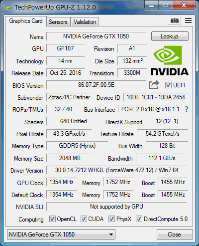 ZOTAC Technology GeForce GTX 1050 2048 MB