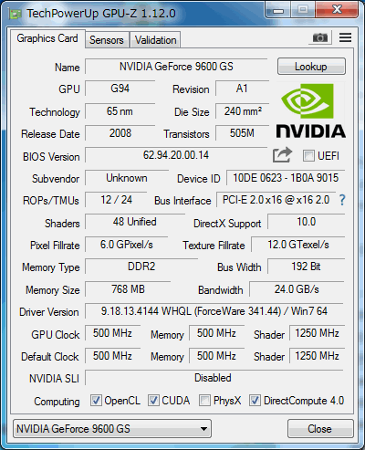 Hewlett-Packard Company GeForce 9600 GS 768 MB