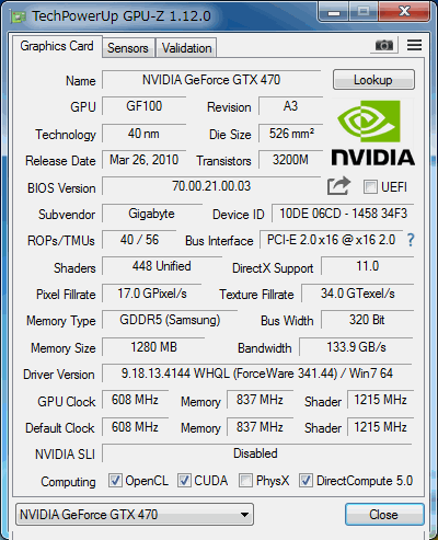 GIGA-BYTE Technology GeForce GTX 470 1280 MB