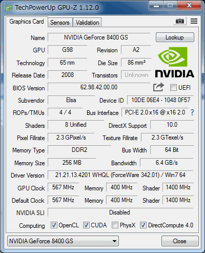 NVIDIA Corporation GeForce 8400 GS |