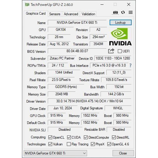 NVIDIA Corporation GeForce GTX 660 Ti |