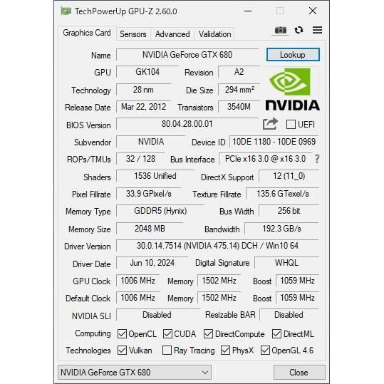 PCI Express 3.0 x16, ELSA GEFORCE GTX 680 2GB, GD680-2GEBXA