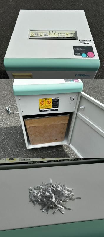 ■ワンカットクロス方式(約2.5×30mm)採用。手裏剣状のカッターで一度で縦横にひきちぎるように細断します。くずはチップ状となり、機密性、収容性に優れています。