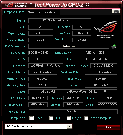 NVIDIA Quadro FX 3500 256MB DDR3 DVIx2 [Geforce 7900ベース] 【中古】