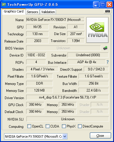 Sparkle GeForce FX 5900XT 128MB DDR AGP 【中古】