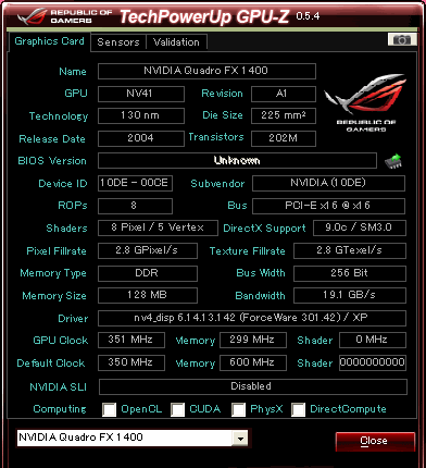 NVIDIA Quadro FX 1400 128MB DDR DVIx2 [Geforce 6800ベース] 【中古】