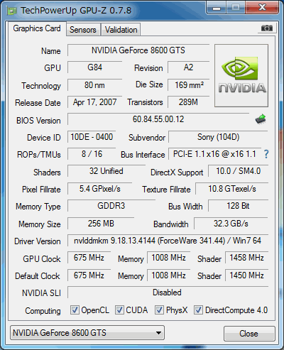 nVidia GeForce 8600GTS 256MB DVIx2 PCI Express x16【中古】